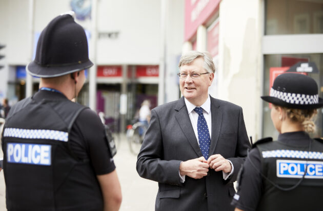 Roger Hirst with Sgt Graham Thomas and PC Casey Armstrong from the Chelmsford Town Centre Team[/caption]