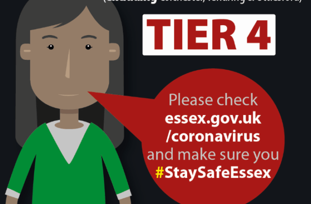 Most of Essex is now in Tier 4 of the Government’s COVID-19 restrictions. This has an impact on what we can and can’t do.