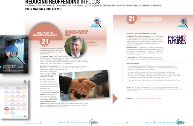 The work of the Police, Fire and Crime Commissioner for Essex features in the document with a case study about the Horizons Project.