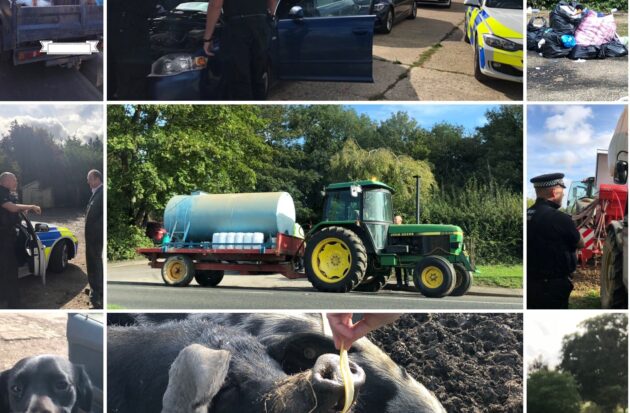 In the afternoon, Roger Hirst, PFCC joined the Rural Engagement Team – and helped to herd 20 escaped goats back to the safety of a field, after they had strayed onto a highway! Later that same afternoon a vehicle stop check found a stolen vehicle and a driver who was under the influence of drugs. All in all a good afternoon for road safety in the county!